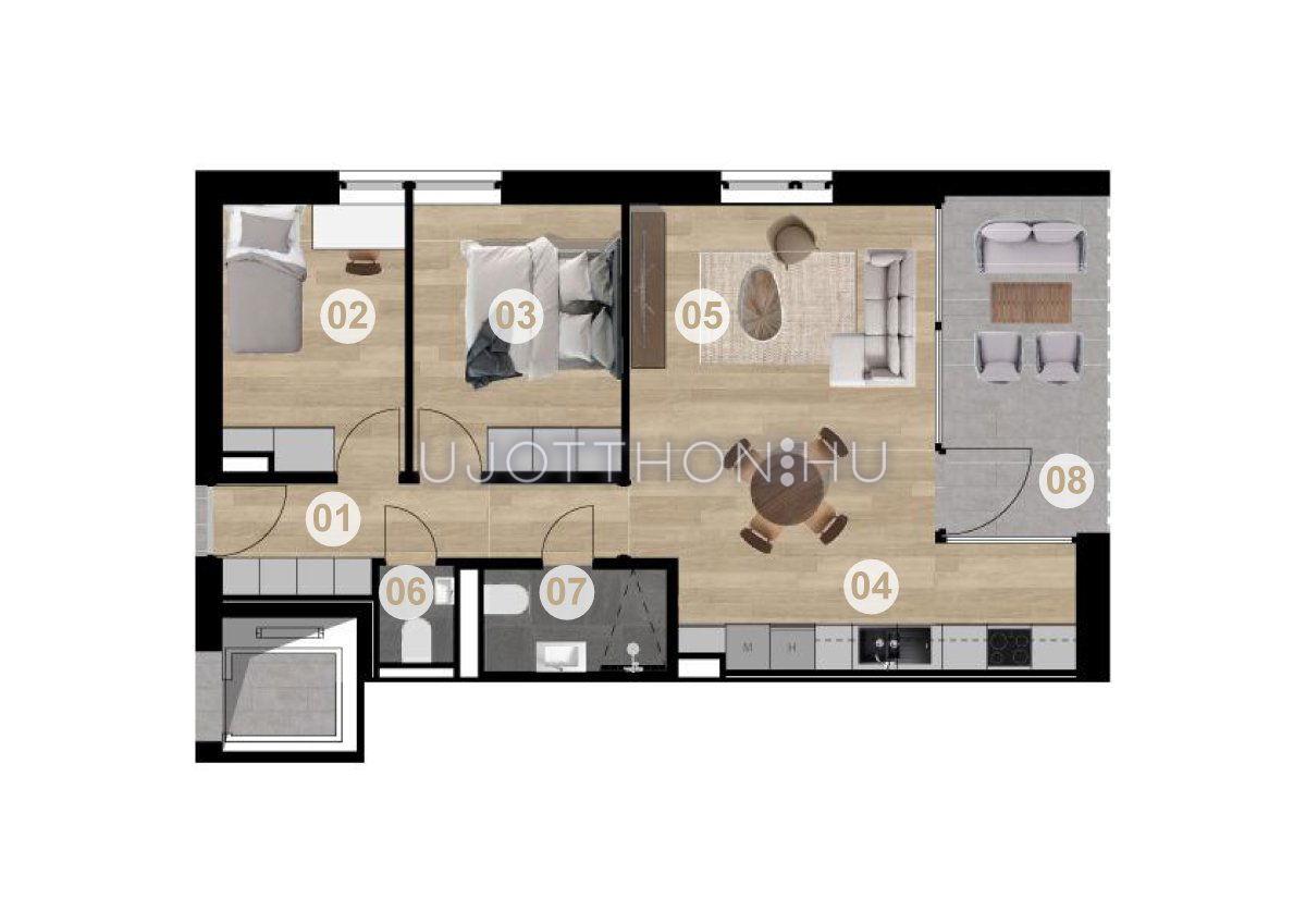 3 szobás 59 m2-es Lakás Szárazvölgy Lakópark - Aszófő, Hunyadi utca 1
