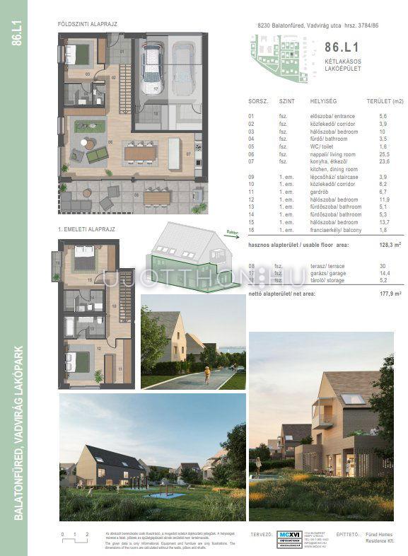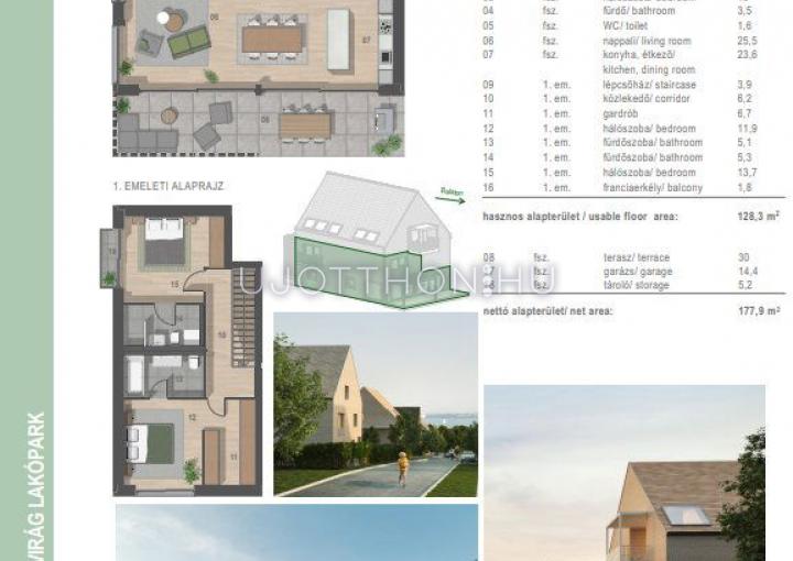 Luxus családi házak több, mint 300m2 lakóterülettel, panorámás tetőtéri terasszal, 4 beállós mélygarázzsal, biciklitárolóval, nagy kerttel és minden igényt kielégítő felszereltséggel.