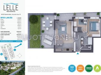 Legyen saját apartmanja a Balaton-parton, akár már 40 millió forinttól! Az újépítésű MyLelle Residence Balatonlelle szívében a Honvéd utcában, szinte a Balaton partján, mindössze 100 méterre a szabad strandtól kínál „A” energetikai besorolású apartmanokat. Az emberléptékűre tervezett, parkosított lakóparkban kétemeletes épületekben 74 darab lakás érhető el. Az alacsony fenntartást a korszerű építészeti és műszaki technológia és a megújuló energiafelhasználás (napelemek és hőszivattyús rendszer) biztosítja, így állandó ottlakásra vagy nyaralónak, de kiadásra is ideális lakásokat kínálunk – egy- és kéthálószobás kivitelben, eltérő méretű loggiával vagy terasszal, földszinti lakások esetében kertkapcsolattal. A lakóparktól néhány perc sétával elérhető a központ és a vasútállomás is.