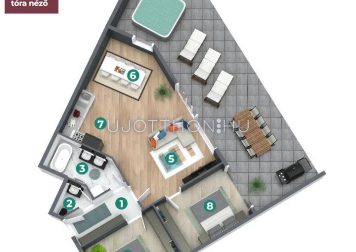 A lakások, üdülők műszaki tartalma mindenben megegyezik, csupán az áfa tartalma különbözik, a lakások ára 5 %, az üdülőké 27 % áfát tartalmaz. Az üdülők a nyugati épületrészben helyezkednek el.