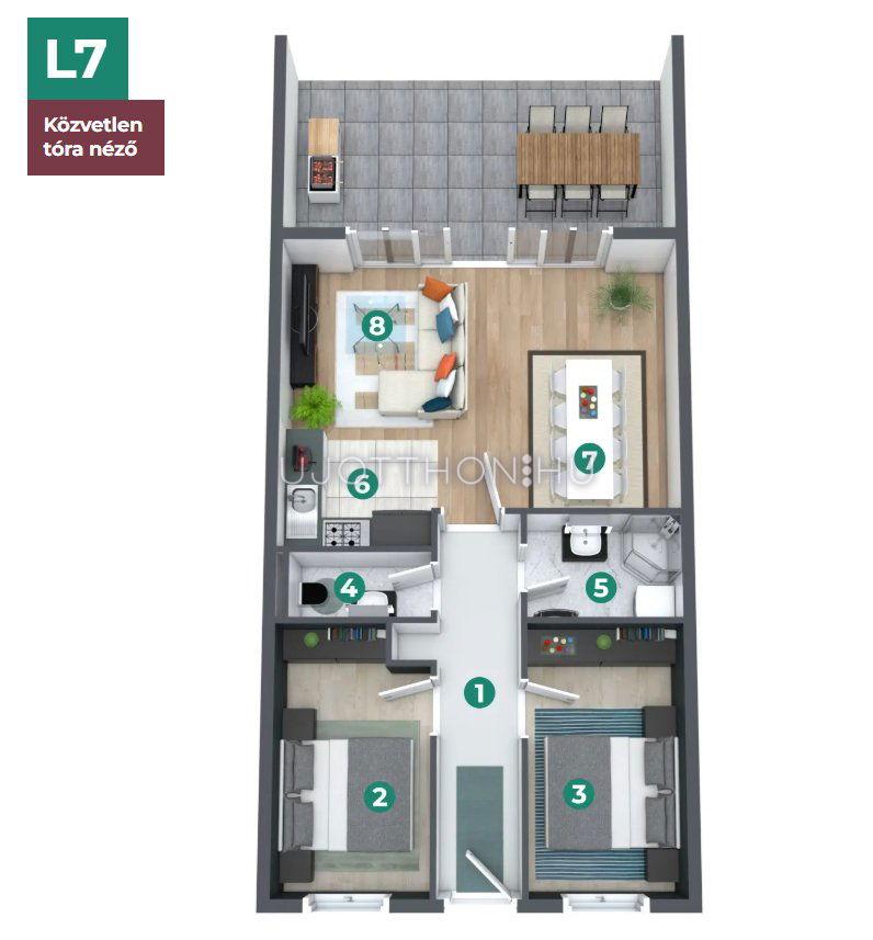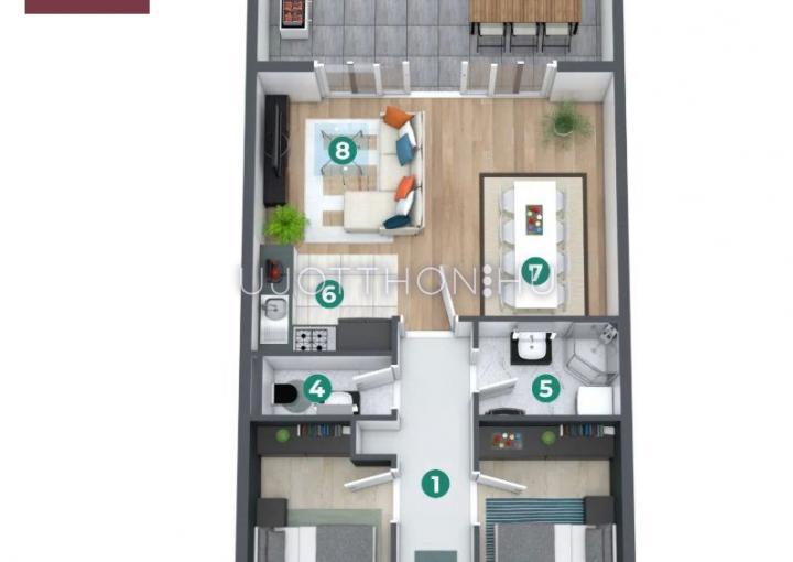 60 lakás, 25 üdülő és 2 kereskedelmi egység kerül megvalósításra. 36 - 108 m2 közötti lakások, üdülők, garzontól egészen a 4 hálószobásig! A lakások, üdülők akár emelt szerkezetkész állapotban (betonozva, vakolt falakkal) is értékesítjük, ilyenkor a vevő saját magának befejezheti.