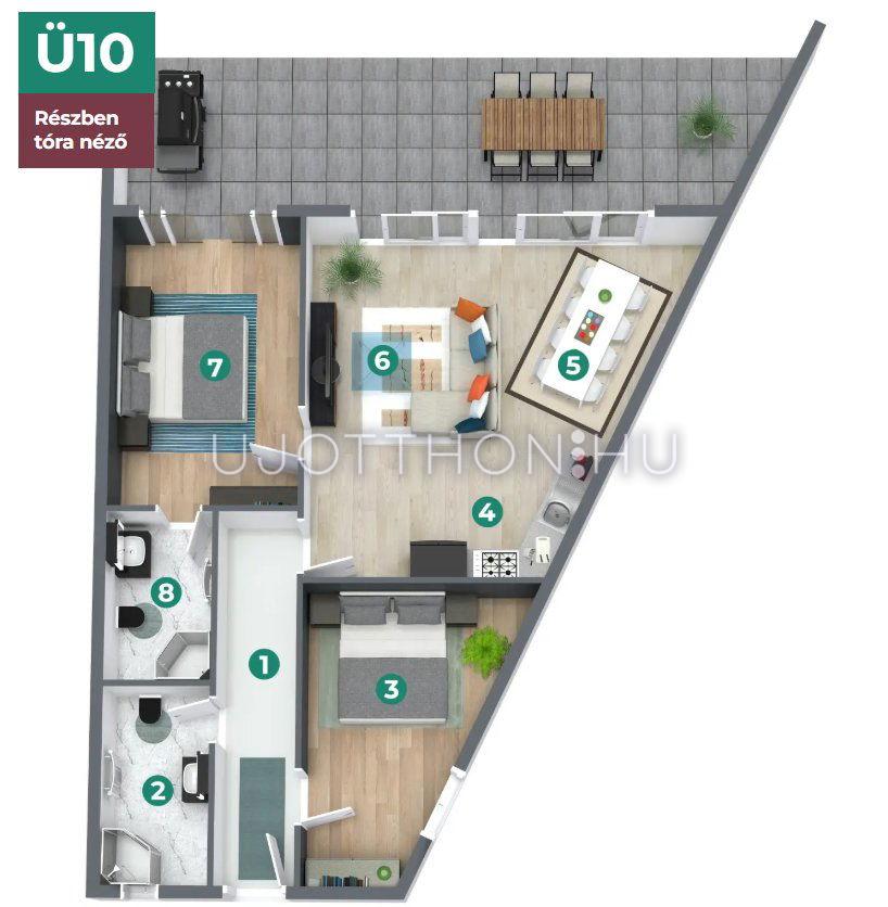 A lakások, üdülők műszaki tartalma mindenben megegyezik, csupán az áfa tartalma különbözik, a lakások ára 5 %, az üdülőké 27 % áfát tartalmaz. Az üdülők a nyugati épületrészben helyezkednek el.