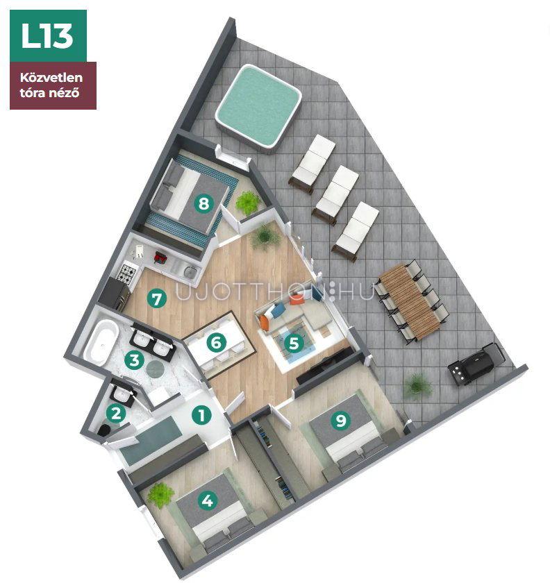 A lakások, üdülők műszaki tartalma mindenben megegyezik, csupán az áfa tartalma különbözik, a lakások ára 5 %, az üdülőké 27 % áfát tartalmaz. Az üdülők a nyugati épületrészben helyezkednek el.