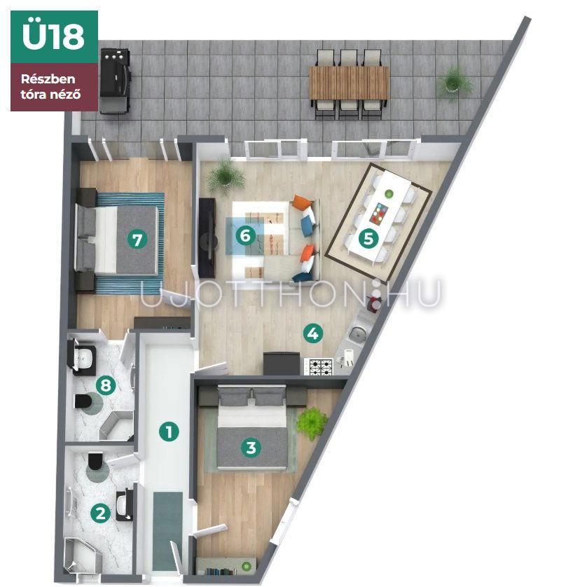 A lakások, üdülők műszaki tartalma mindenben megegyezik, csupán az áfa tartalma különbözik, a lakások ára 5 %, az üdülőké 27 % áfát tartalmaz. Az üdülők a nyugati épületrészben helyezkednek el.