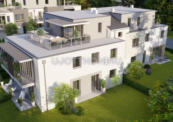 Egy teljesen új telekalakítású, kiváló helyen és kiváló áron épülő lakóparkban első ütemben 37 négyzetmétertől 70 négyzetméterig épülnek lakások, a földszinti lakások saját kertrésszel.