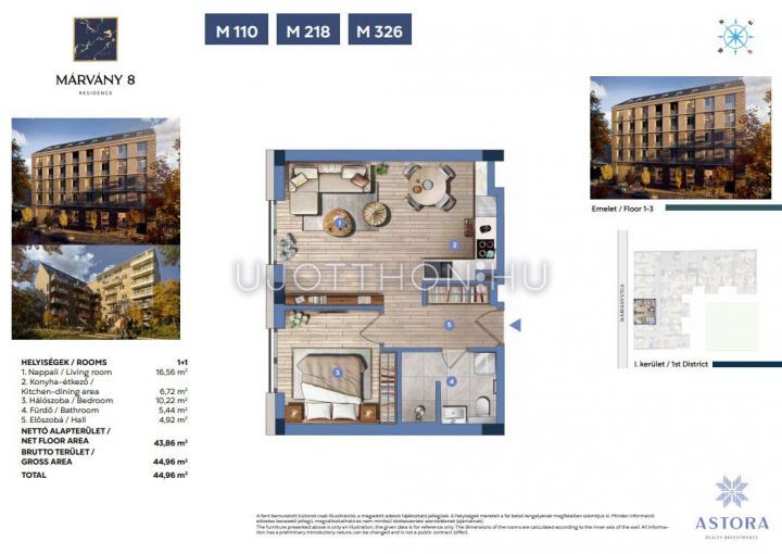 2 szobás 45 m2-es Lakás MÁRVÁNY 8 Residence - Budapest I. kerület, Krisztinaváros, Márvány utca 8