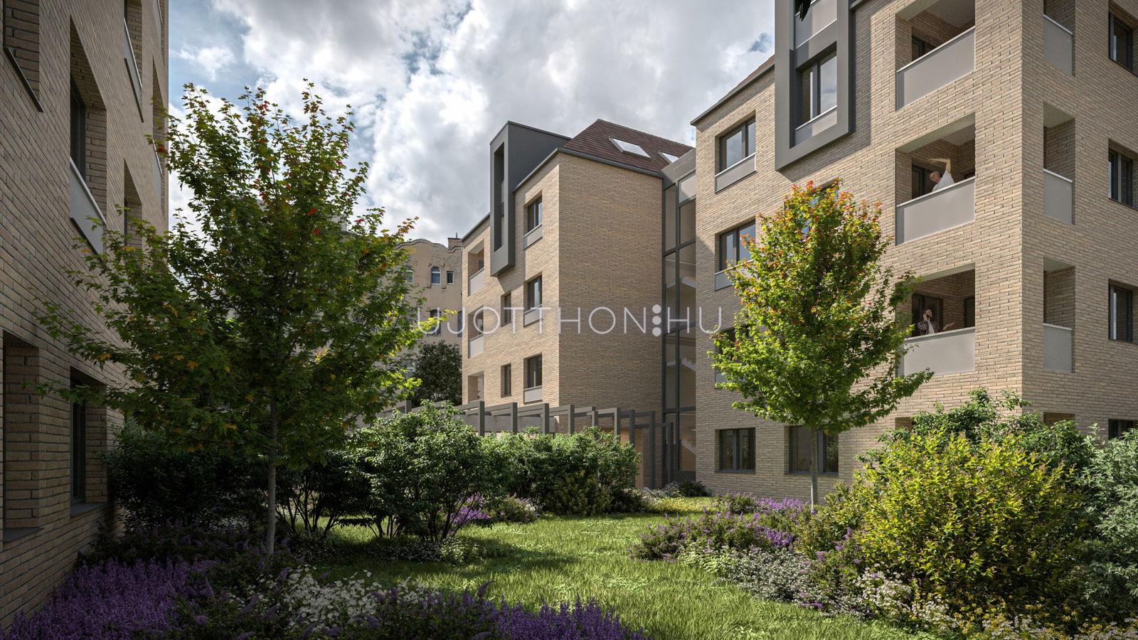 A kapun belépve, az előkertben át jutunk az elegáns lobby és recepcióra. Innen a három épületet egy kerti úton, passzázs köti majd össze. A tervezés során nagy hangsúlyt kapott a családi igényekre tervezett lakások minőségi használhatósága. Ablakos konyhák, master bedroomok, dupla fürdőszobák, gardrób és háztartási helyiségek is növelik majd a komfortérzetet. Az A, B, és C lépcsőházban is kiemeltem jól bútorzható, két irányba tájolt otthonok kerülnek kialakítása. A földszinti lakások többségéhez pedig 50-100 m2-es privát kertek is tartoznak, míg a közös területeken közösségi funkciókkal, reprezentatív kertet alakítunk ki.