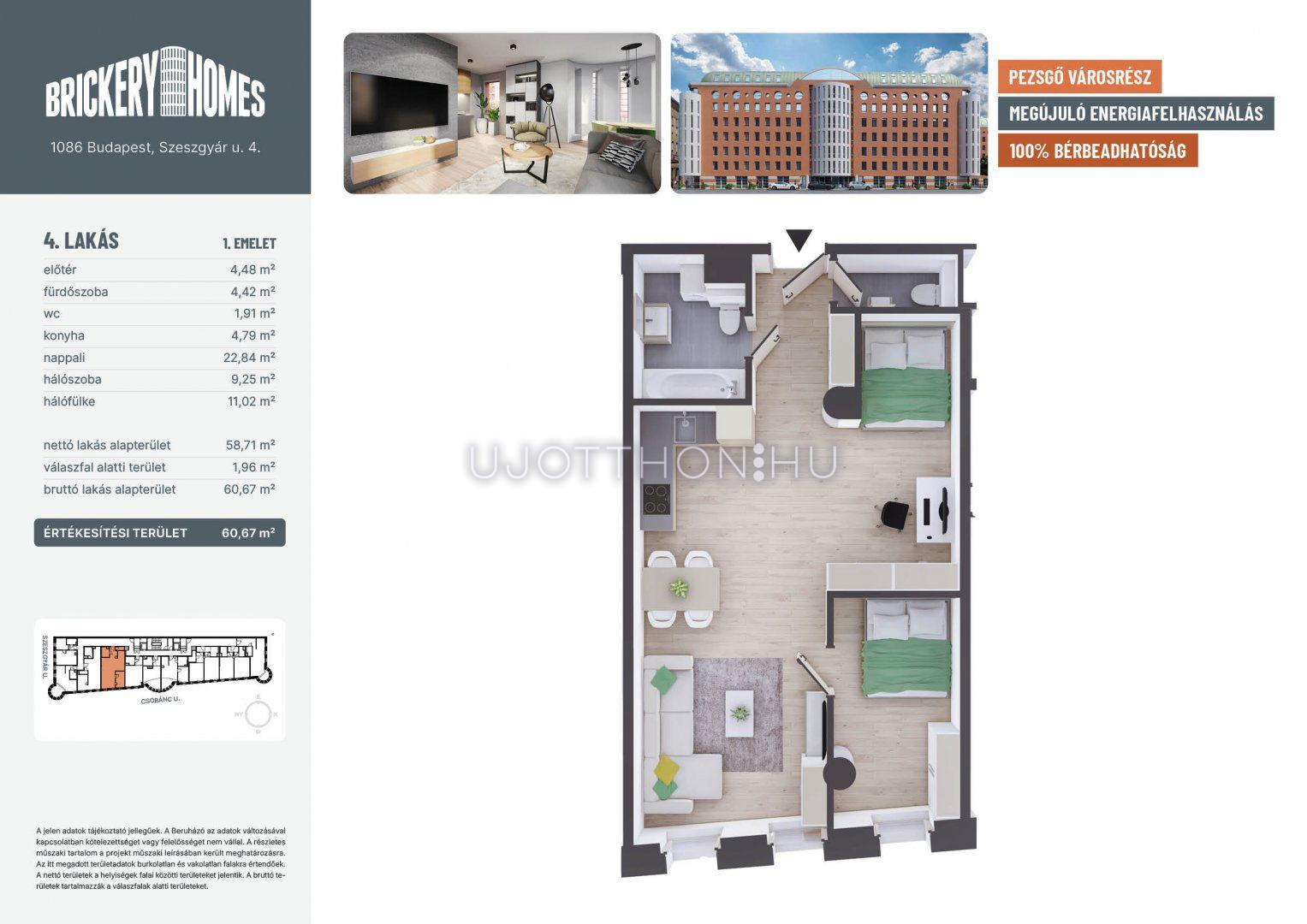2 szobás 61 m2-es Lakás BrickeryHomes - Budapest VIII. kerület, Józsefváros, Szeszgyár utca 4