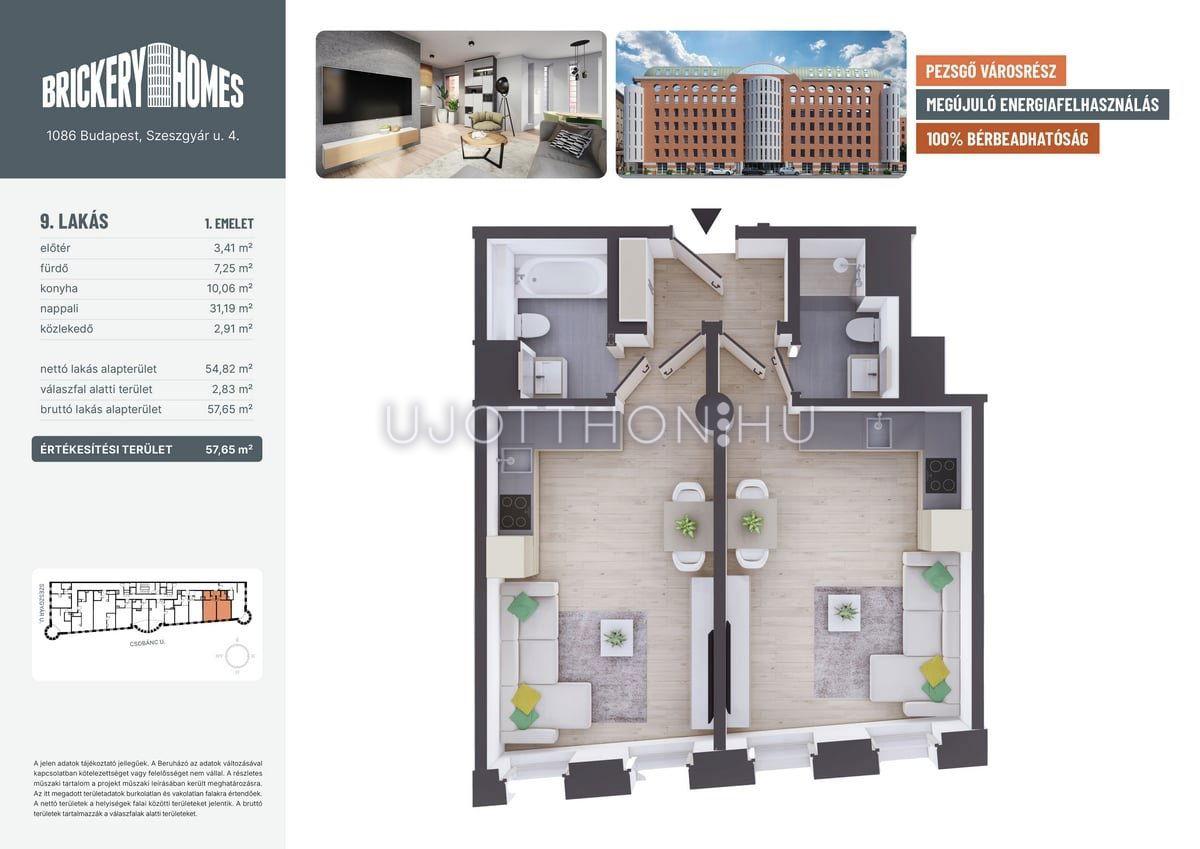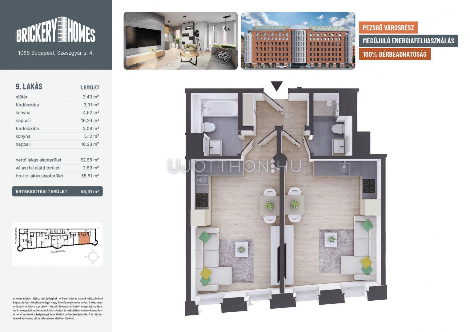 2 szobás 56 m2-es Lakás BrickeryHomes - Budapest VIII. kerület, Józsefváros, Szeszgyár utca 4
