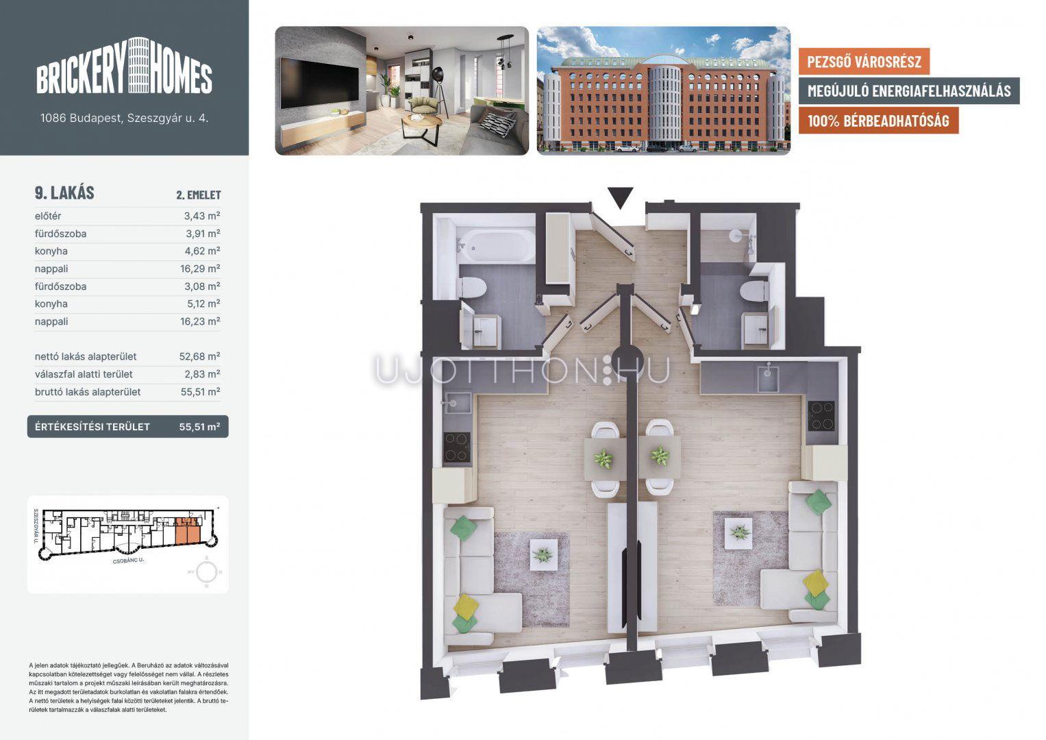 2 szobás 56 m2-es Lakás BrickeryHomes - Budapest VIII. kerület, Józsefváros, Szeszgyár utca 4