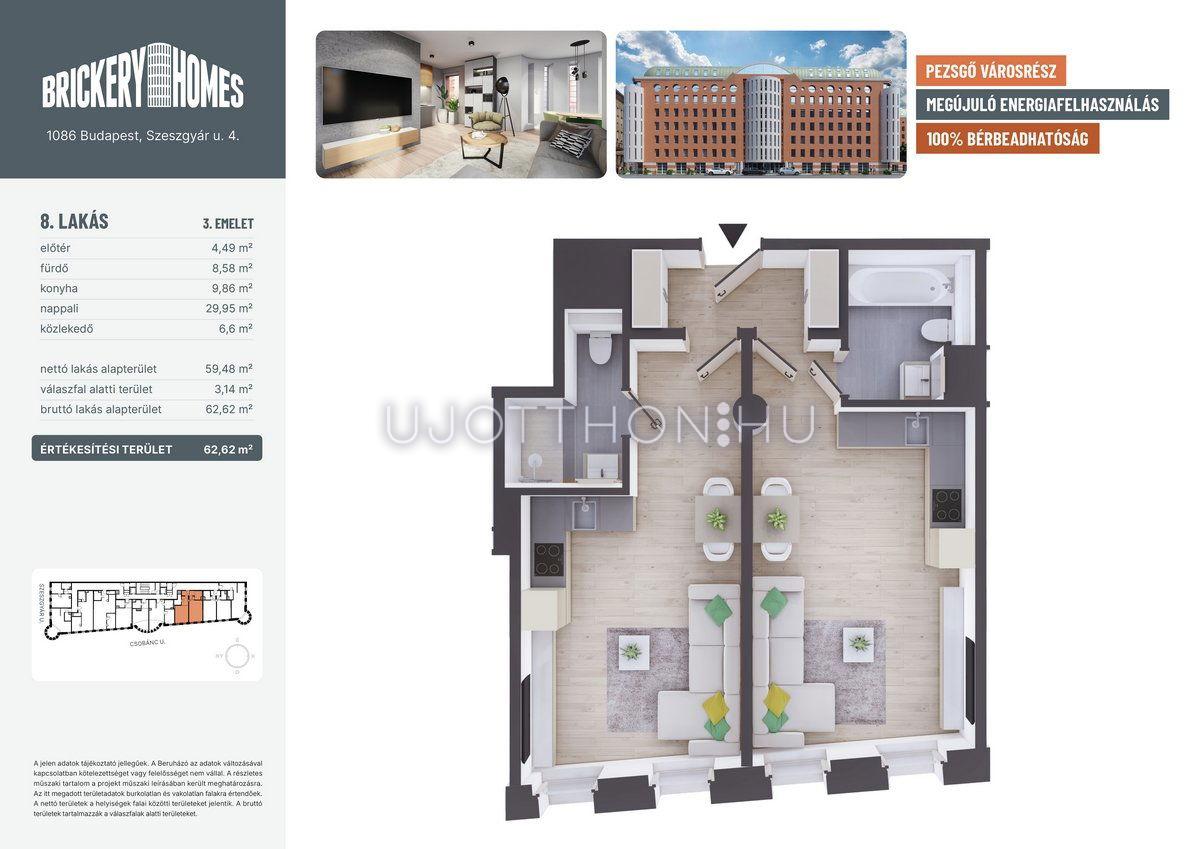 2 szobás 61 m2-es Lakás BrickeryHomes - Budapest VIII. kerület, Józsefváros, Szeszgyár utca 4