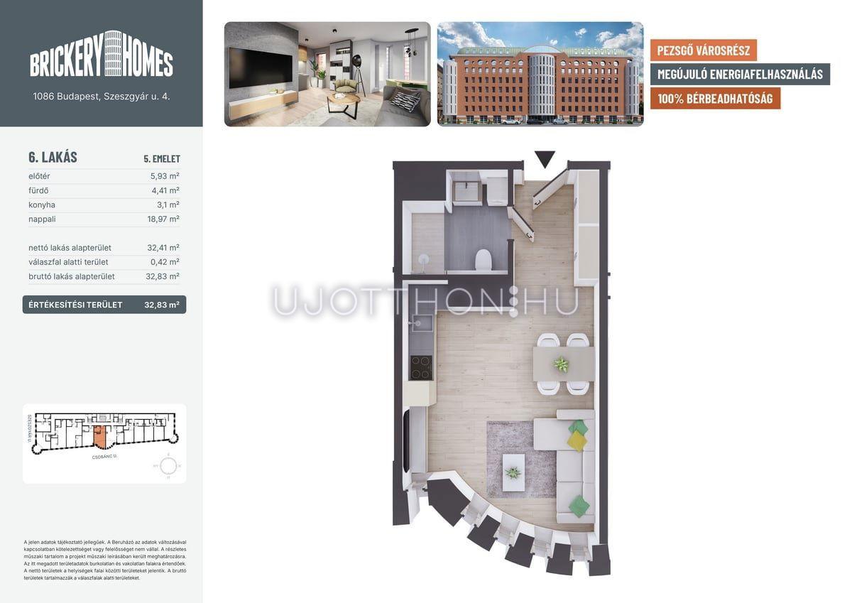 1 szobás 32 m2-es Lakás BrickeryHomes - Budapest VIII. kerület, Józsefváros, Szeszgyár utca 4