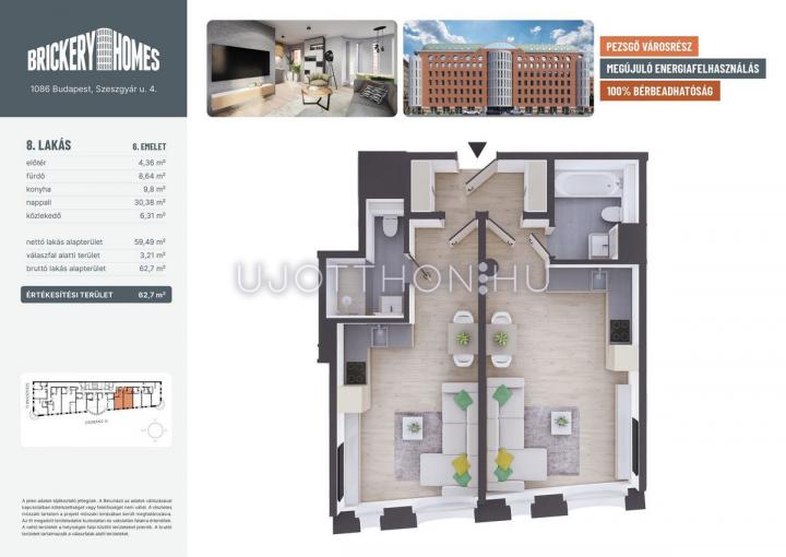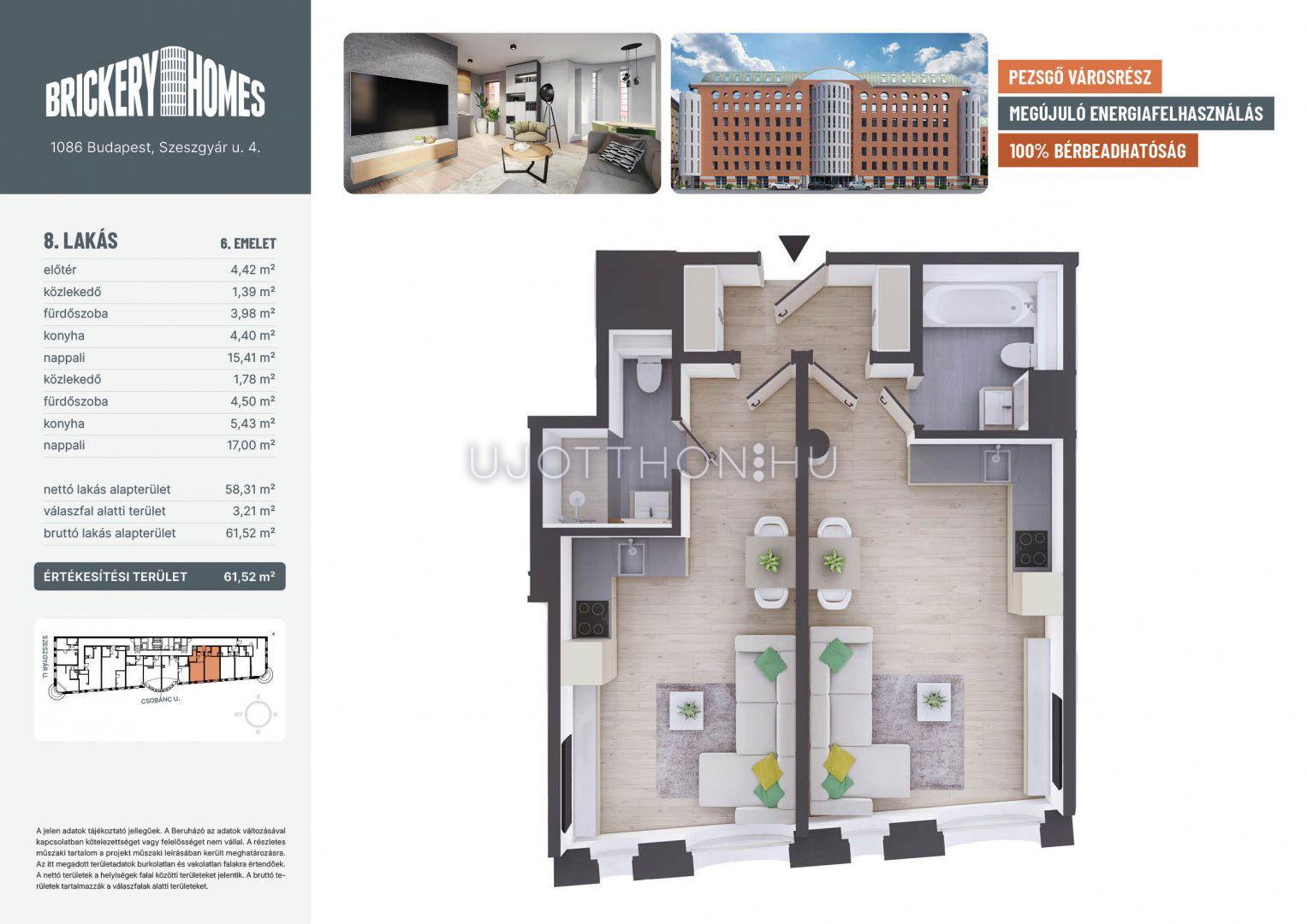 2 szobás 62 m2-es Lakás BrickeryHomes - Budapest VIII. kerület, Józsefváros, Szeszgyár utca 4