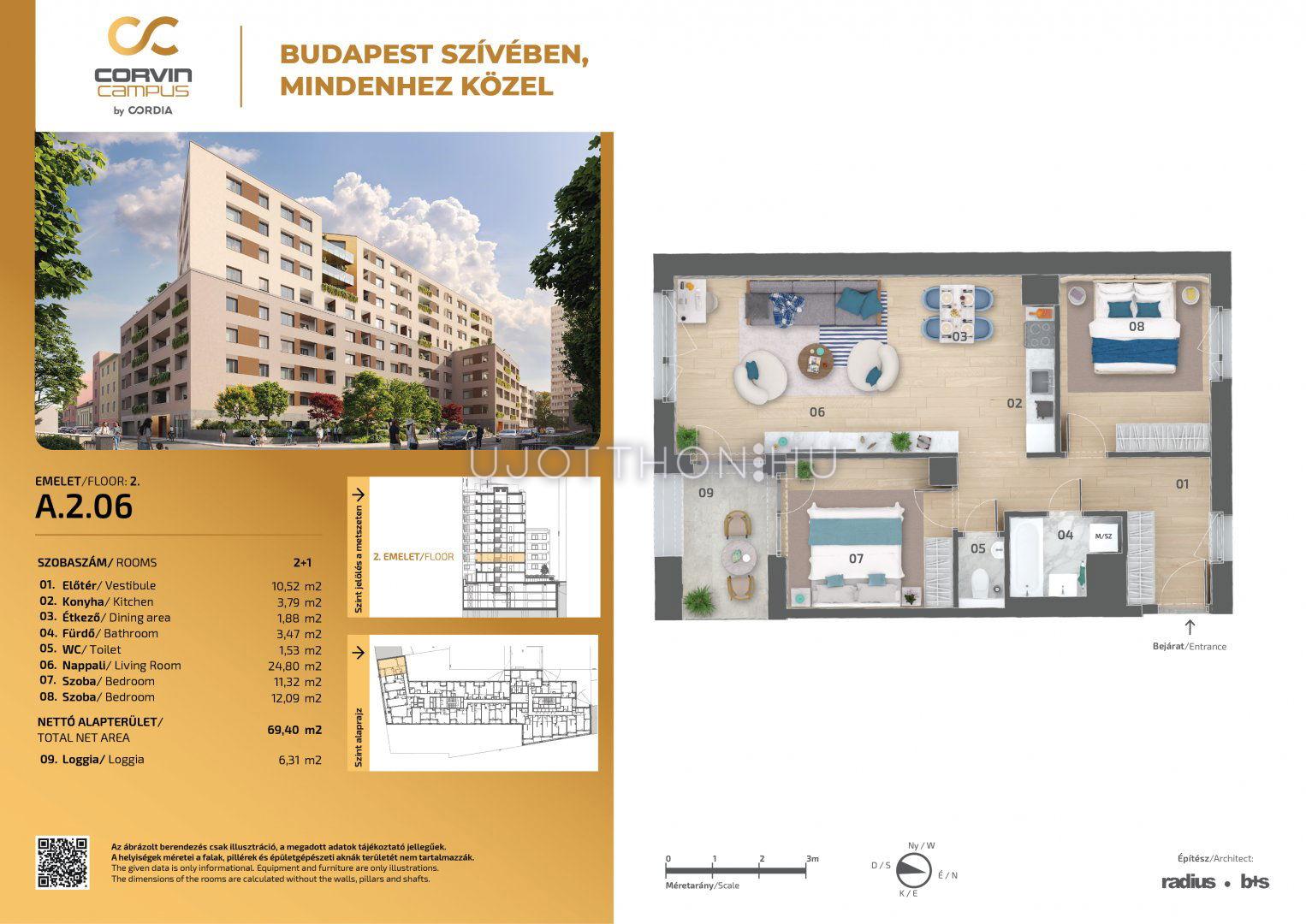 3 szobás 69 m2-es Lakás Corvin Campus - Budapest VIII. kerület, Józsefváros, Balassa utca 7