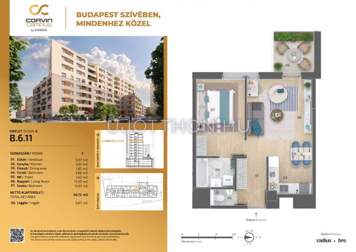 2 szobás 47 m2-es Lakás Corvin Campus - Budapest VIII. kerület, Józsefváros, Balassa utca 7