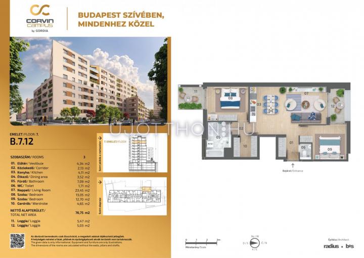 3 szobás 77 m2-es Lakás Corvin Campus - Budapest VIII. kerület, Józsefváros, Balassa utca 7