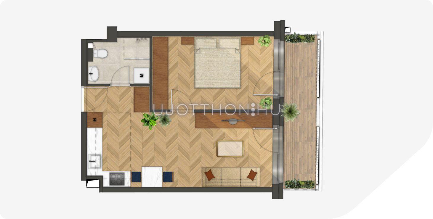 1 + 1 félszobás 41 m2-es Lakás Samuel Garden - Budapest VIII. kerület, Józsefváros, Diószegi Sámuel utca 3