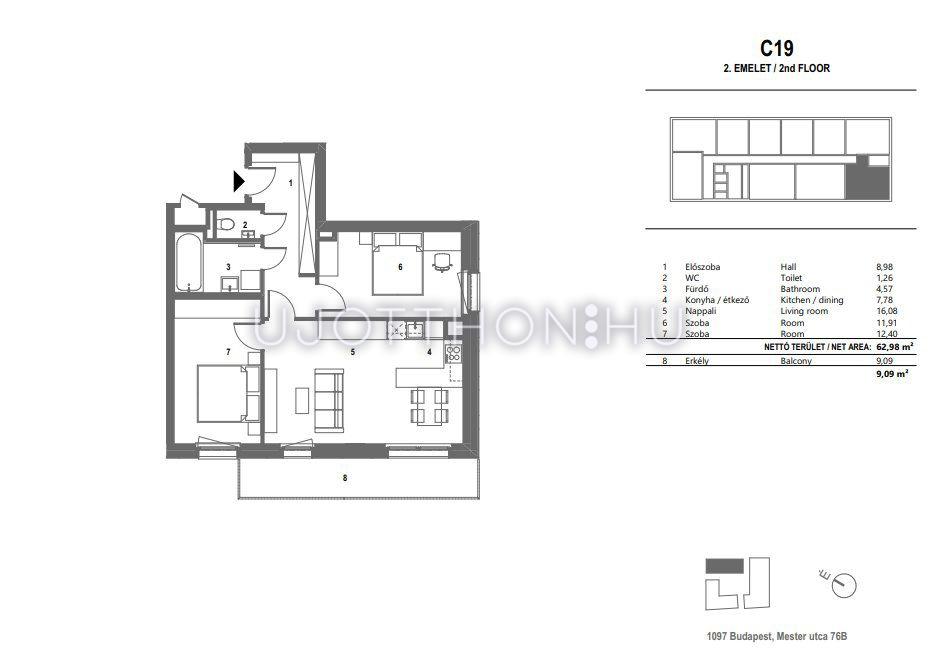 3 szobás 63 m2-es Lakás M76 Projekt - Budapest IX. kerület, Ferencváros, Mester utca 76/B