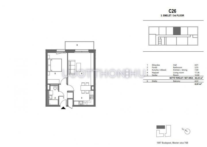 2 szobás 44 m2-es Lakás M76 Projekt - Budapest IX. kerület, Ferencváros, Mester utca 76/B