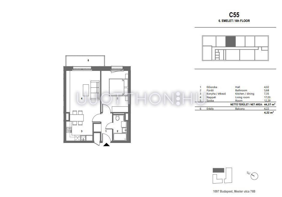 3 szobás 44 m2-es Lakás M76 Projekt - Budapest IX. kerület, Ferencváros, Mester utca 76/B