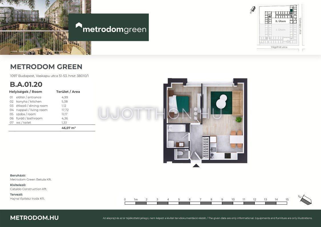 2 szobás 46 m2-es Lakás Metrodom Green 2. ütem - Budapest IX. kerület, 1097 Budapest IX. kerület, Vaskapu utca 51-53.