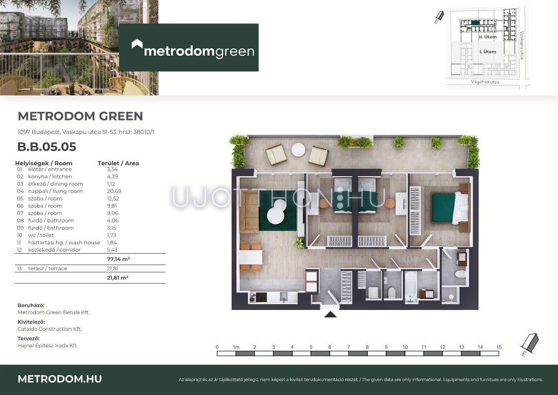 4 szobás 77 m2-es Lakás Metrodom Green 2. ütem - Budapest IX. kerület, 1097 Budapest IX. kerület, Vaskapu utca 51-53.