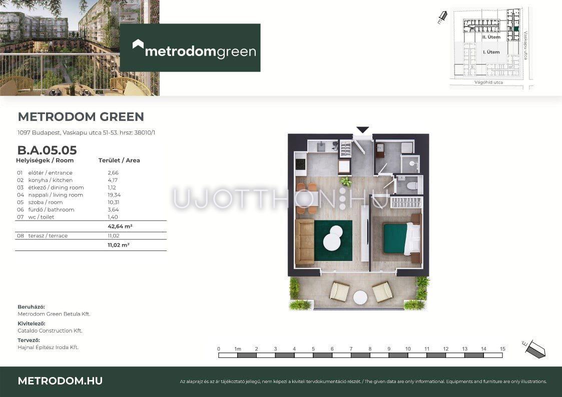 2 szobás 43 m2-es Lakás Metrodom Green 2. ütem - Budapest IX. kerület, 1097 Budapest IX. kerület, Vaskapu utca 51-53.