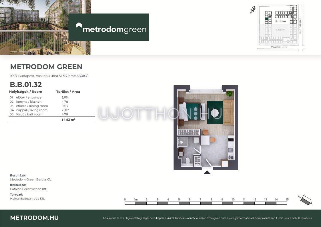 1 szobás 35 m2-es Lakás Metrodom Green 2. ütem - Budapest IX. kerület, 1097 Budapest IX. kerület, Vaskapu utca 51-53.