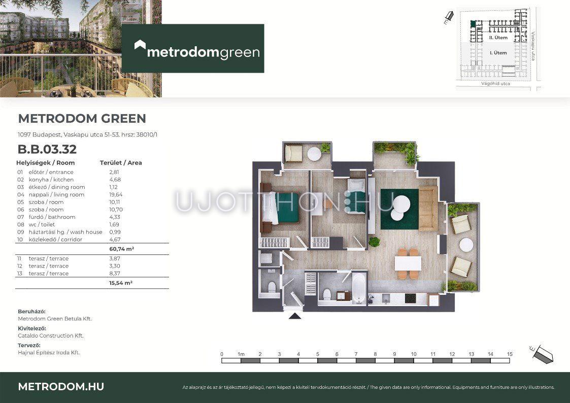 A Metrodom Green Budapest IX. kerületének Millenniumi Városközpontjában, a Vaskapu és a Vágóhíd utca sarkán fekszik, közel a Nemzeti Színházhoz és a Művészetek Palotájához. Az összesen 516 változatos méretű, prémium minőségű lakást és számtalan közösségi szolgáltatást kínáló lakóparkot a növényekkel befuttatott zöld homlokzata és a zöldtetők teszik különlegessé.