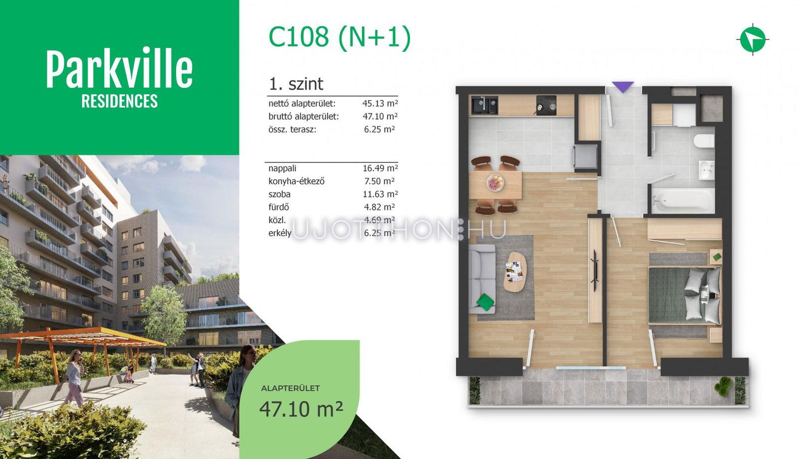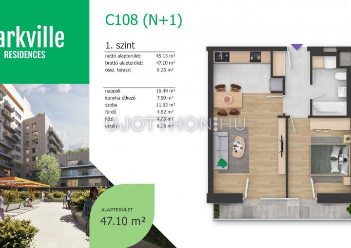 2 szobás 47 m2-es Lakás Parkville Residences - Budapest IX. kerület, Nádasdy utca 4.