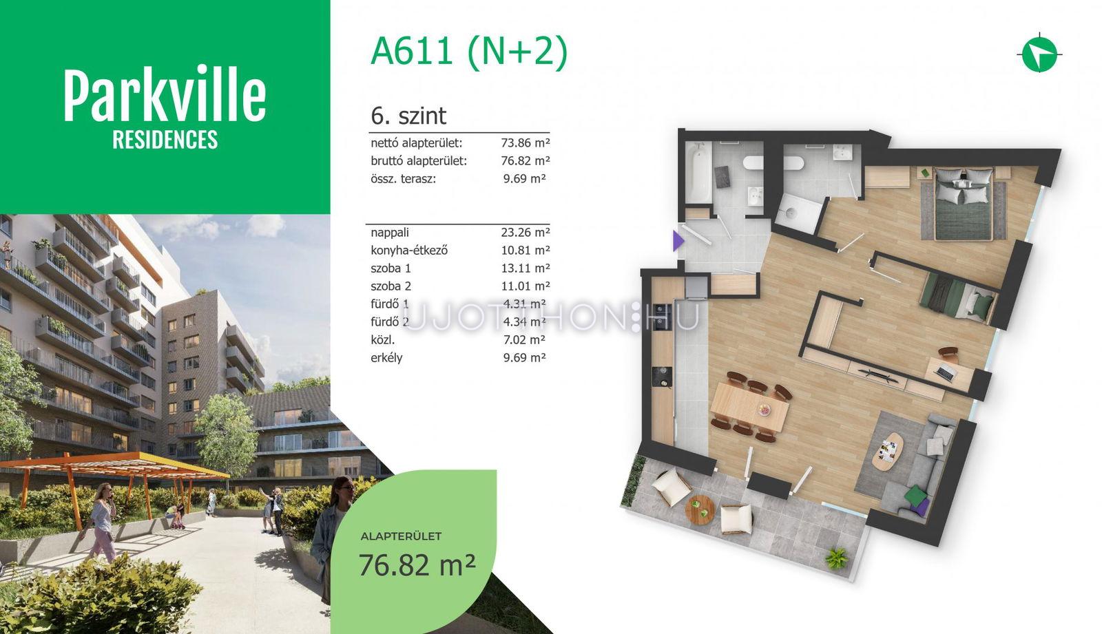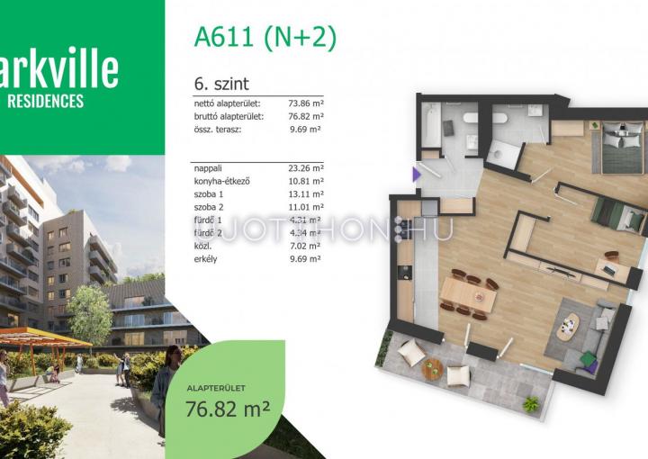 3 szobás 77 m2-es Lakás Parkville Residences - Budapest IX. kerület, Nádasdy utca 4.