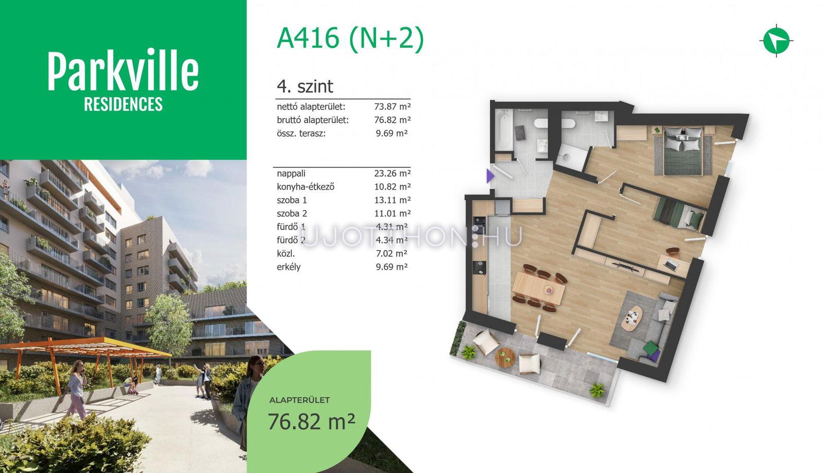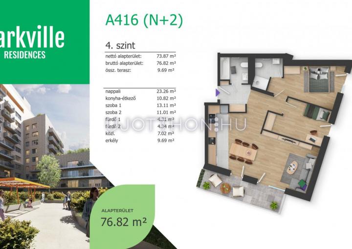 2 szobás 77 m2-es Lakás Parkville Residences - Budapest IX. kerület, Nádasdy utca 4.