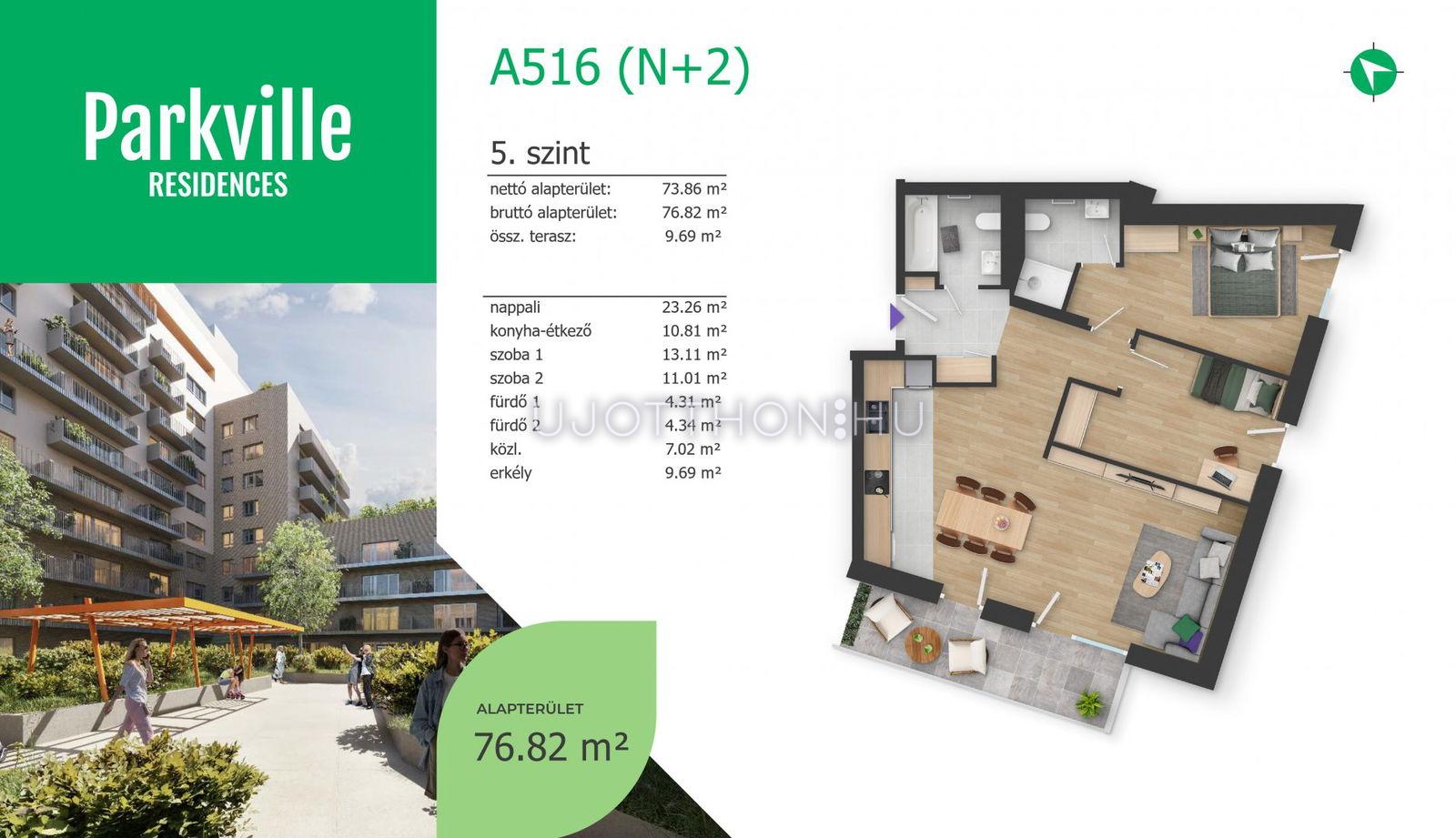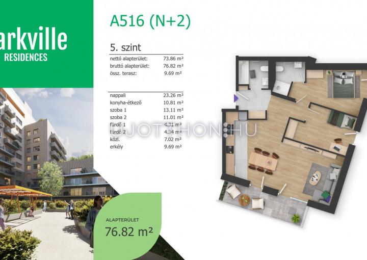 3 szobás 76 m2-es Lakás Parkville Residences - Budapest IX. kerület, Nádasdy utca 4.