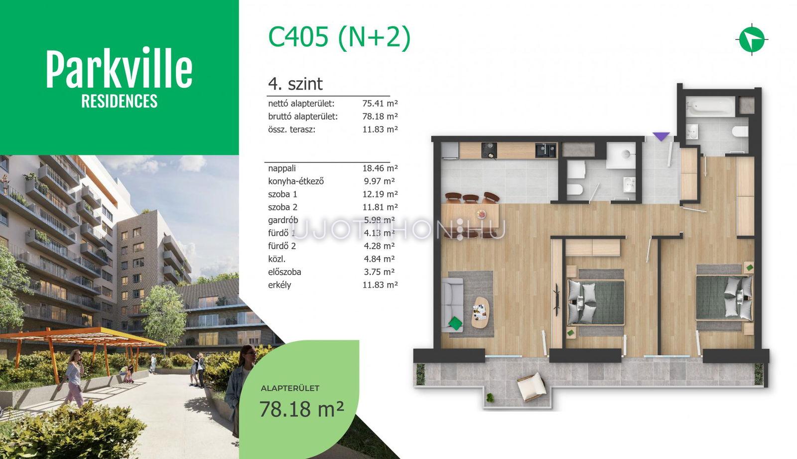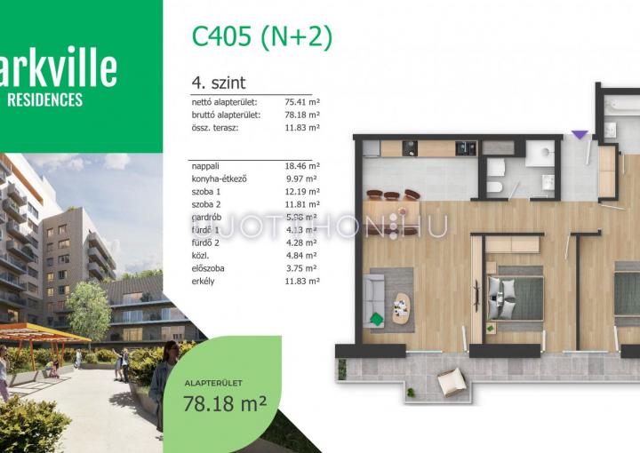 3 szobás 78 m2-es Lakás Parkville Residences - Budapest IX. kerület, Nádasdy utca 4.