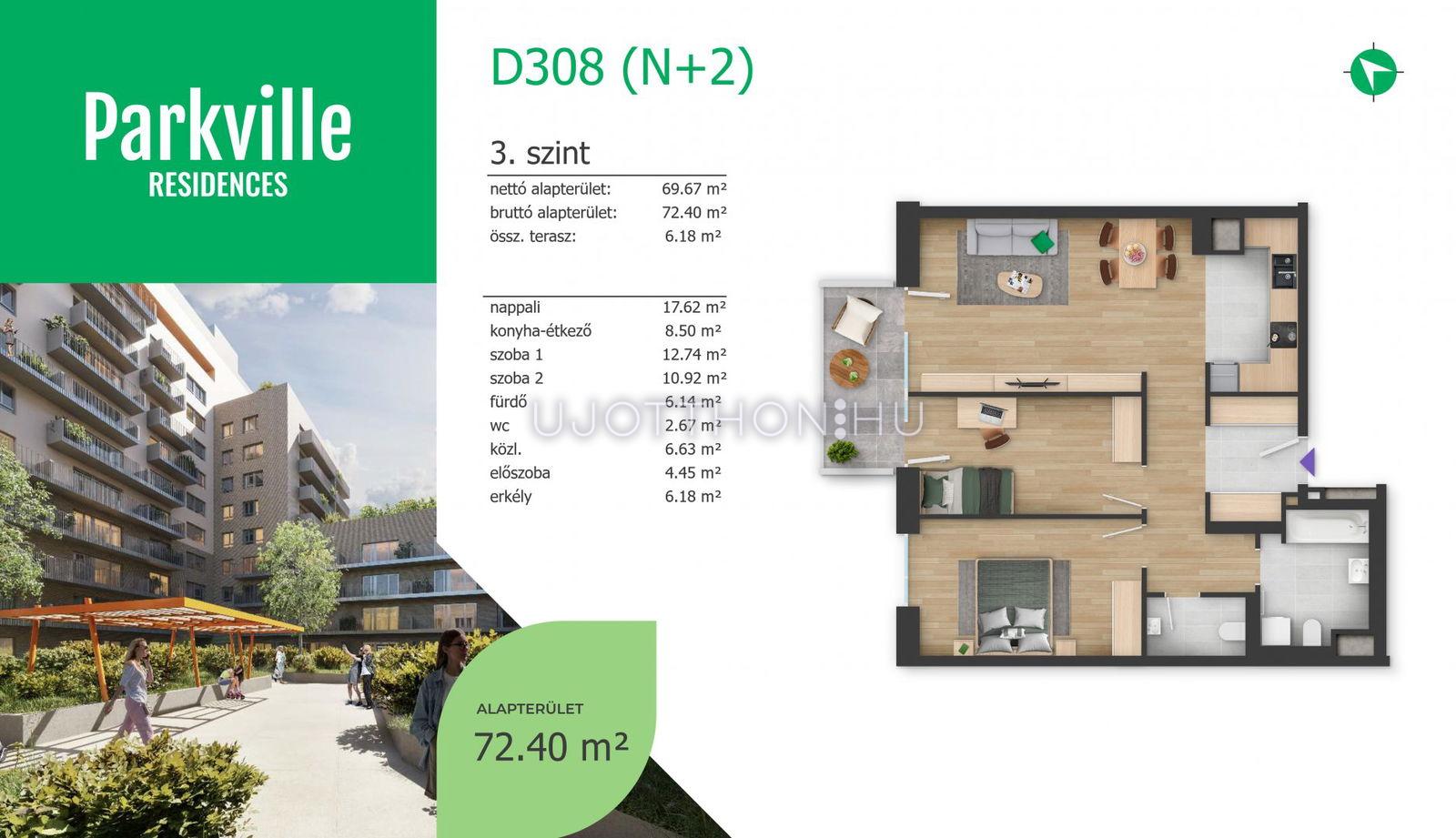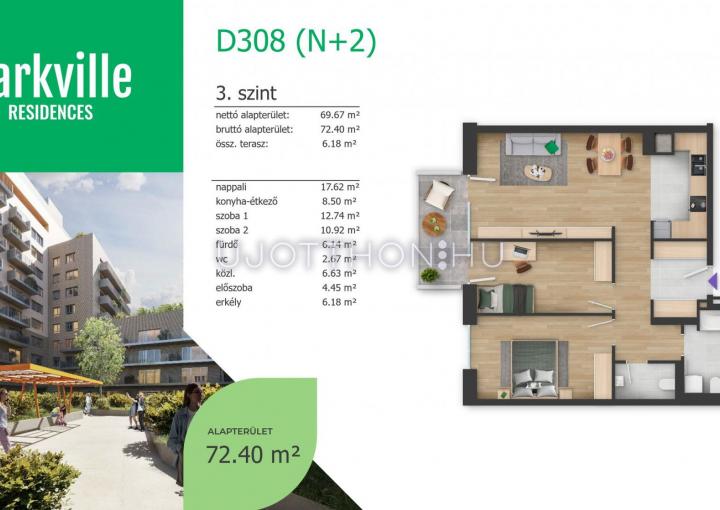 3 szobás 72 m2-es Lakás Parkville Residences - Budapest IX. kerület, Nádasdy utca 4.