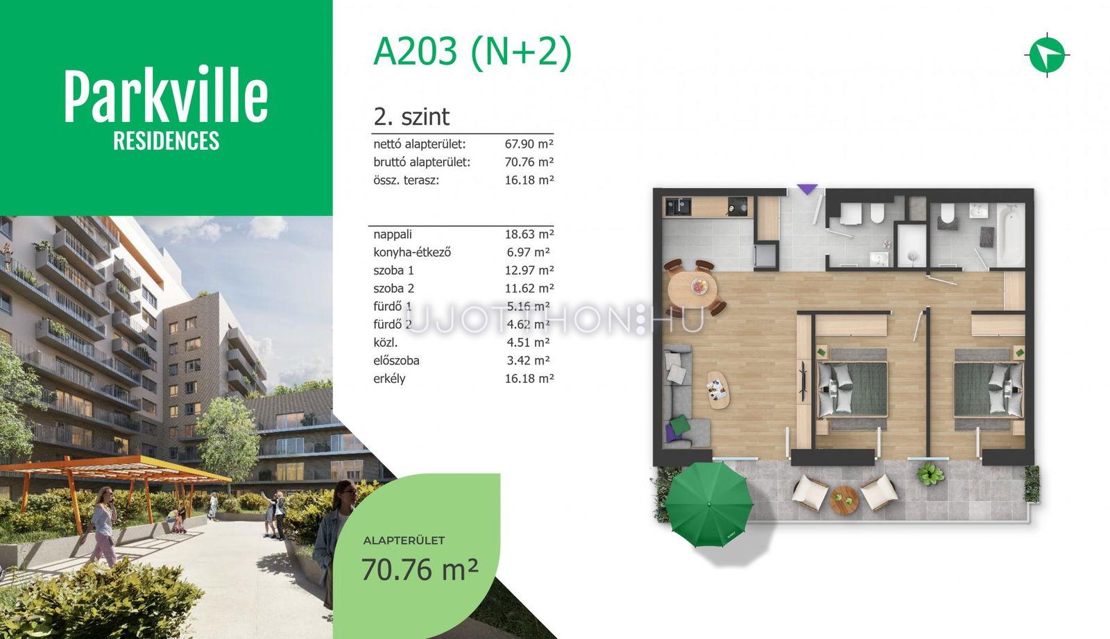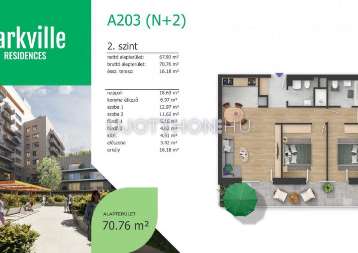 3 szobás 70 m2-es Lakás Parkville Residences - Budapest IX. kerület, Nádasdy utca 4.