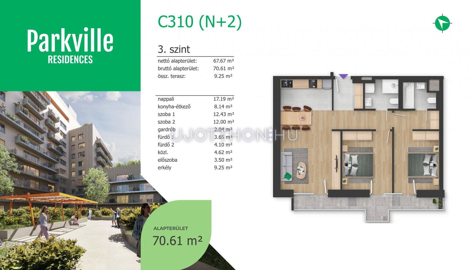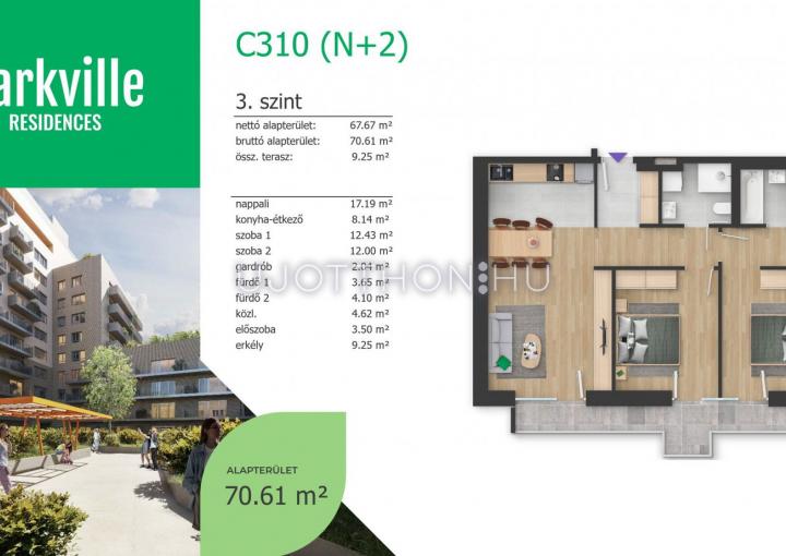 3 szobás 70 m2-es Lakás Parkville Residences - Budapest IX. kerület, Nádasdy utca 4.