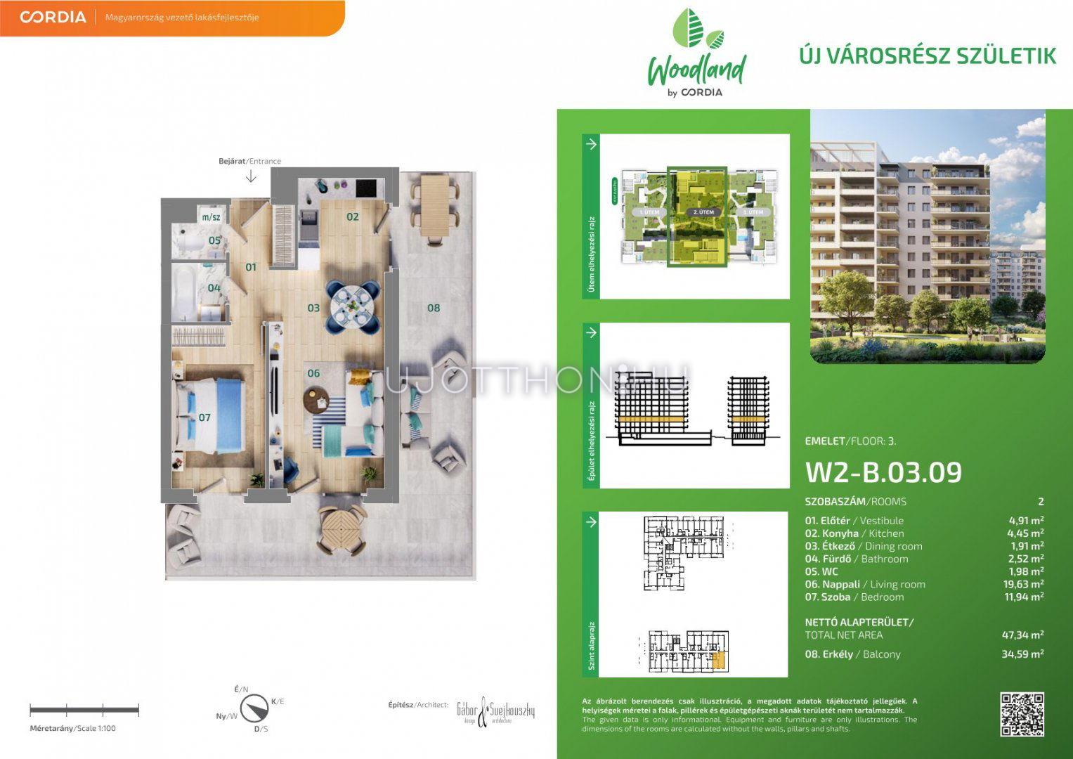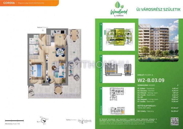 2 szobás 47 m2-es Lakás Woodland 2 by Cordia - Budapest IX. kerület, Ferencváros, Vágóhíd utca 9