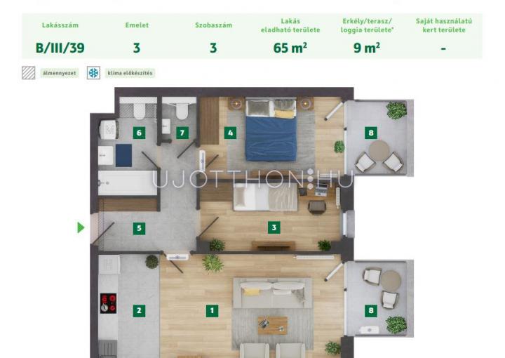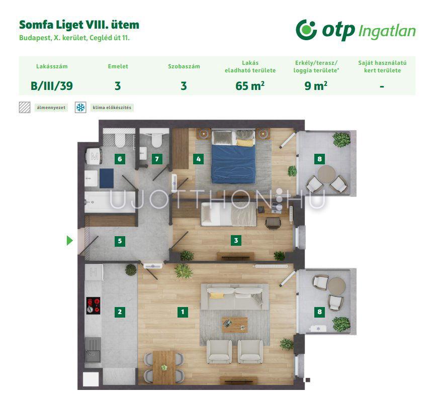 3 szobás 65 m2-es Lakás Somfa Liget VIII. ütem - Budapest X. kerület, Gyárdűlő, Ceglédi út 11