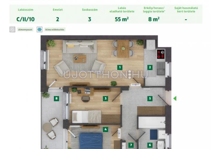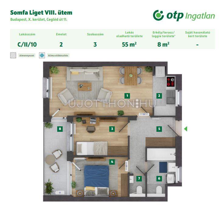 3 szobás 55 m2-es Lakás Somfa Liget VIII. ütem - Budapest X. kerület, Gyárdűlő, Ceglédi út 11