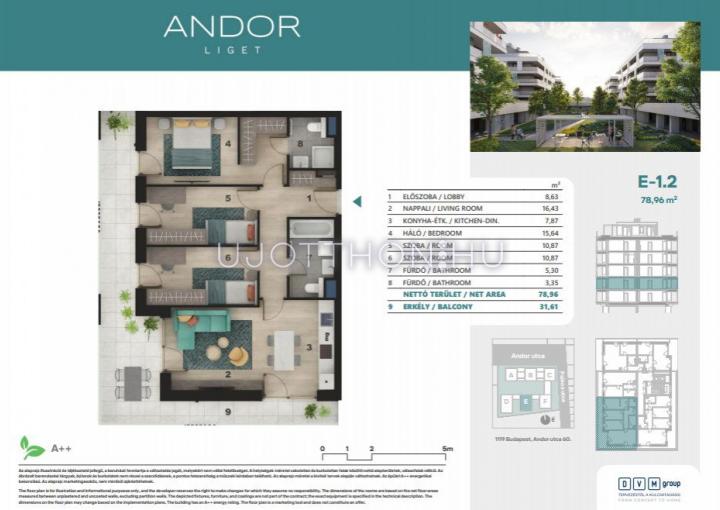 Az A++ besorolású, közel nulla energiaigényű lakások mindegyikéhez tartozik erkély vagy terasz, de a kertkapcsolatos vagy penthouse otthonra vágyók is megtalálják a tökéletes otthont. Az okos megoldásokkal felszerelt lakóparkban, mélygarázs, elektromos autótöltők és kerékpártárolók is a lakók rendelkezésére állnak. Kertváros, otthon, Újbuda - ez az Andor Liget.