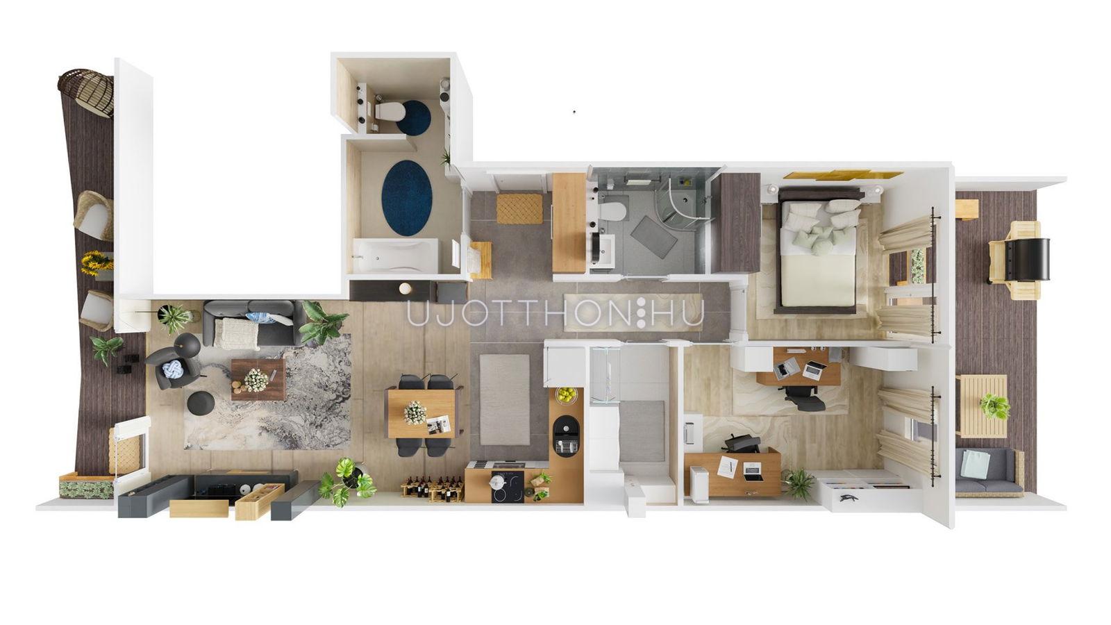 Olyan otthonról álmodsz, mely végre nem a kompromisszumokról szól? Ahol minden a Te igényeid és stílusod szerint kerül kialakításra? Ahonnan jó érzés reggelente útnak indulni és ahová boldogító hazatérni? Amelyben hosszú távon is fantáziát látsz? A nappali plusz két hálószobás megoldás számtalan lehetőséget rejt, attól függően, hogyan alakul az életed. Ami az egyik pillanatban dolgozószoba, az a másikban nyugodtan lehet gardrób-, vendég-, játszó- vagy gyerekszoba. Válaszd ki a számodra legszimpatikusabb elrendezést, tájolást, emeletet, és kezdj el képzeletben berendezkedni. Az erkélyt vagy - földszinti lakás esetén - a kertkapcsolatot se hagyd figyelmen kívül!