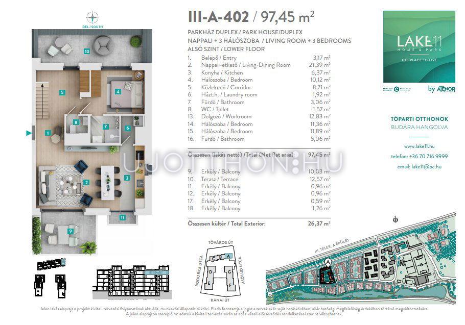 A hirdetési oldalakon mindössze néhány kiemelt lakástípusunk található. A teljes kínálatunkkal és bővebb információkkal keresse értékesítőinket egyedi ajánlatkéréssel a projekt weboldalán található elérhetőségeken. A honlapon megtekintheti a lakások alaprajzát és a teraszról élvezhető panorámát.