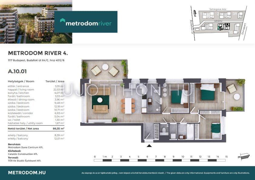 A Metrodom River Újbudán, a Lágymányosi öböl és a Rákóczi híd közelében helyezkedik el.