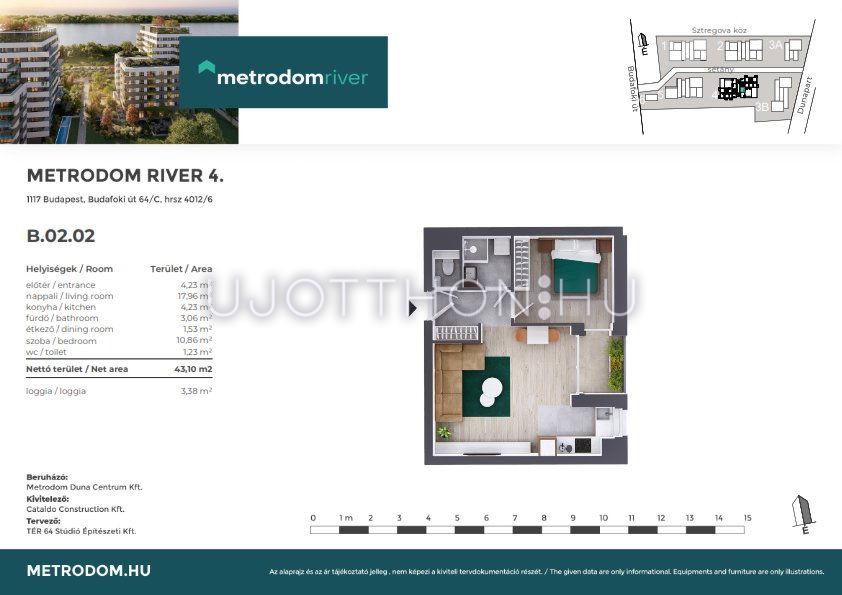 2 szobás 43 m2-es Lakás Metrodom River 4. - Budapest XI. kerület, Kelenföld, Budafoki út 64