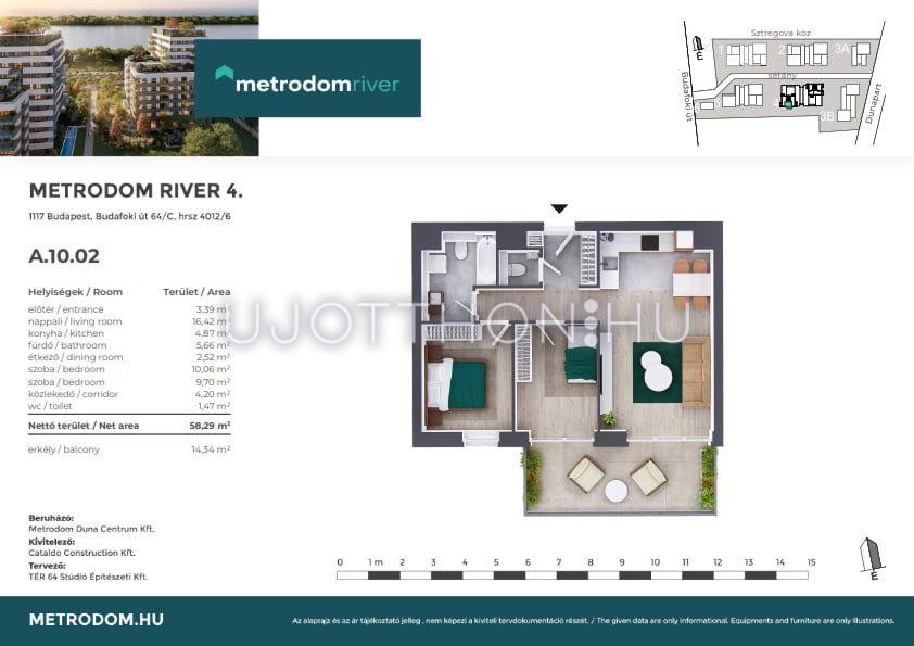 3 szobás 58 m2-es Lakás Metrodom River 4. - Budapest XI. kerület, Kelenföld, Budafoki út 64