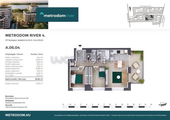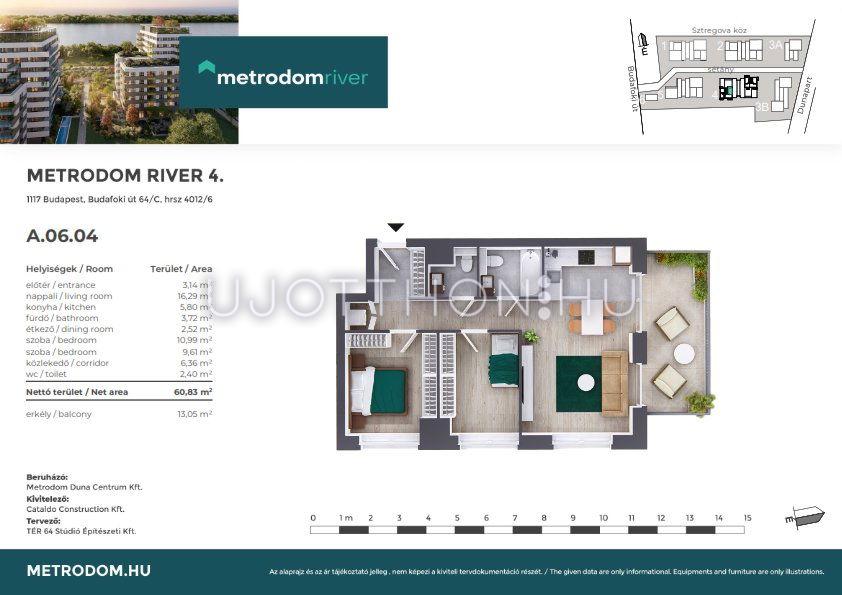 3 szobás 61 m2-es Lakás Metrodom River 4. - Budapest XI. kerület, Kelenföld, Budafoki út 64