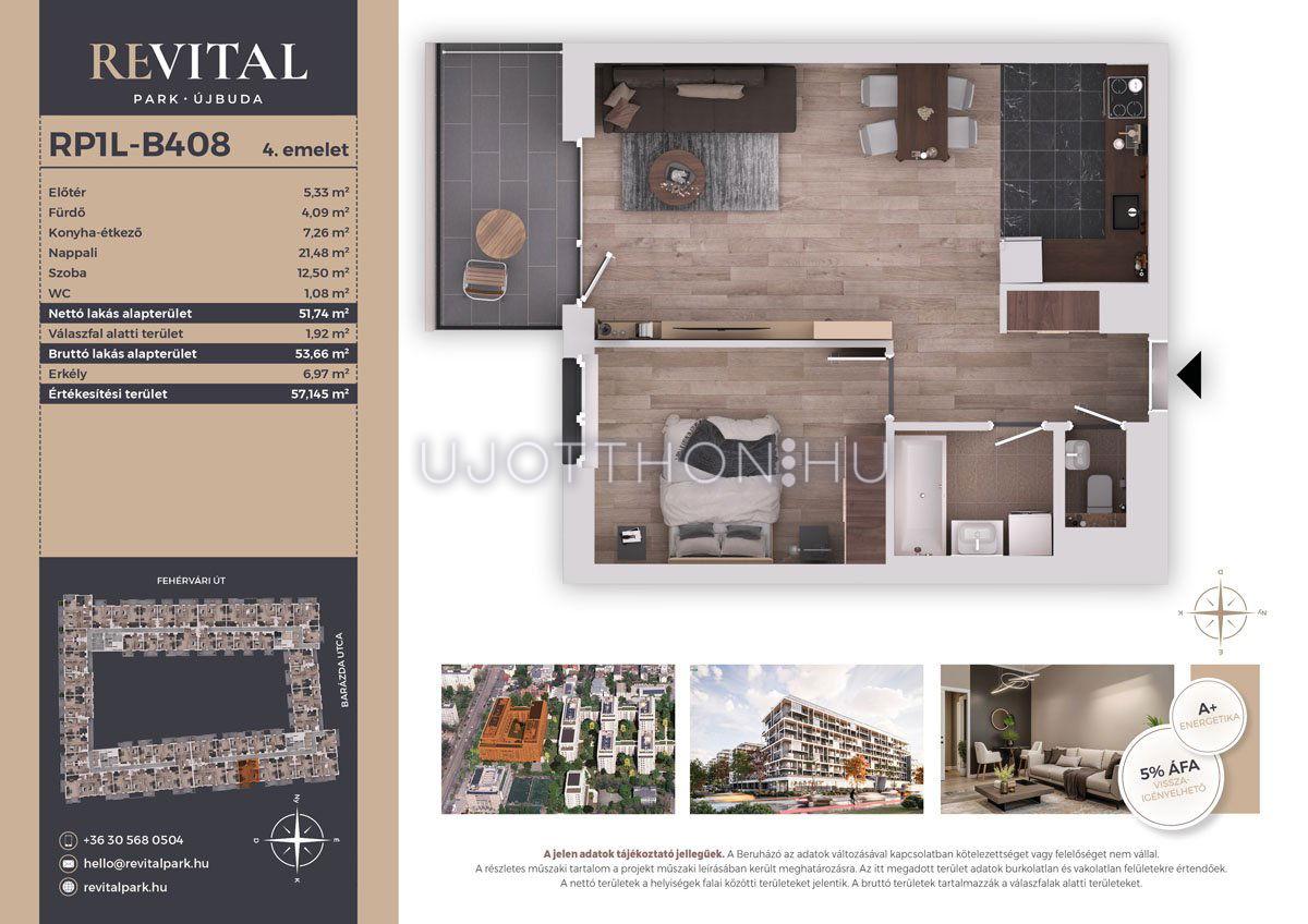 2 szobás 52 m2-es Lakás Revital Park - Budapest XI. kerület, Kelenföld, Fehérvári út 120