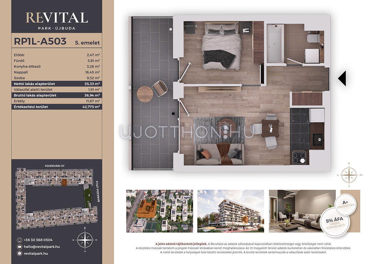 2 szobás 36 m2-es Lakás Revital Park - Budapest XI. kerület, Kelenföld, Fehérvári út 120