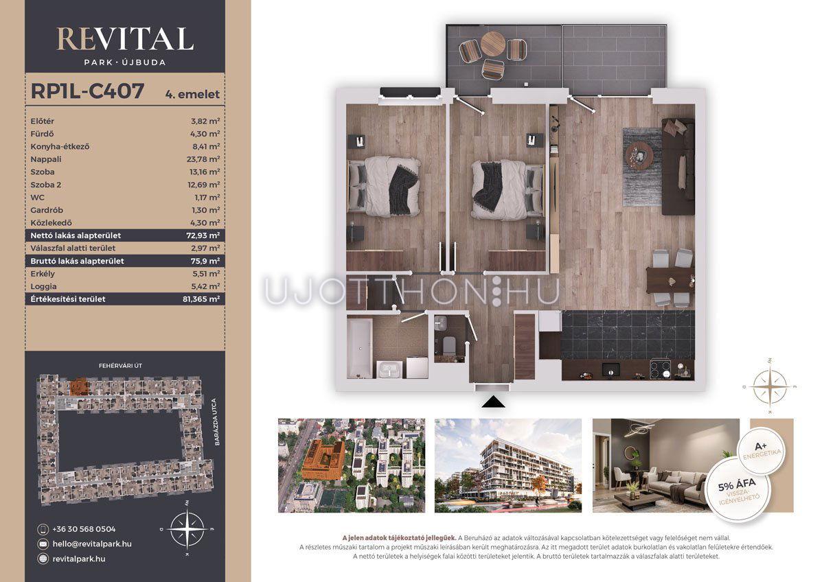 3 szobás 74 m2-es Lakás Revital Park - Budapest XI. kerület, Kelenföld, Fehérvári út 120